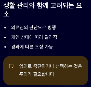 상황에 따라 의료진의 판단으로 약물이 병행되기도 합니다. 당뇨병 치료법에서 약물은 생활 관리와 함께 고려되는 요소로, 개인의 상태와 경과에 따라 달라질 수 있습니다. 임의로 중단하거나 선택하는 것은 주의가 필요합니다.