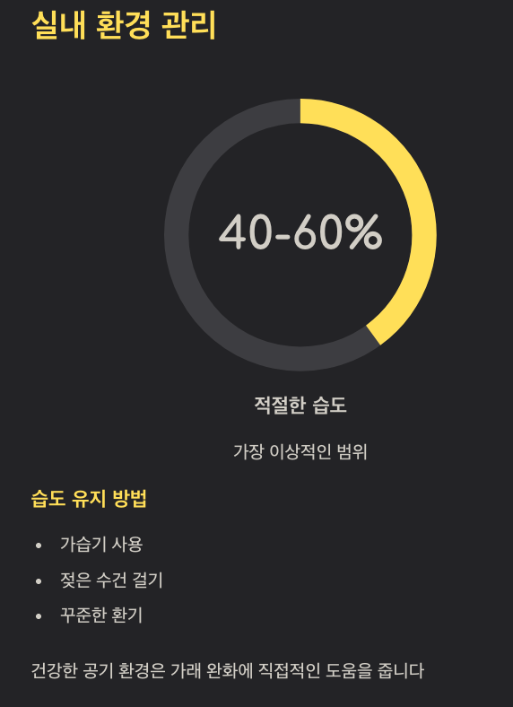 40~60% 정도의 습도를 유지하면 기관지가 훨씬 편안해집니다.