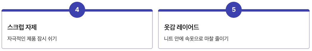 - 니트류는 속옷과 한 겹 레이어드해서 마찰을 줄여요.