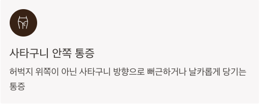 허벅지 위쪽이 아닌 사타구니 방향으로 뻐근하거나 날카롭게 당기는 통증이 지속된다면 고관절 기원일 가능성이 높습니다.