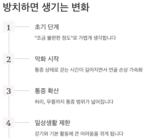 걷기와 일상생활의 질을 바꾸는 부위인 만큼, 몸이 보내는 신호를 무겁게 받아주시길 바랍니다.