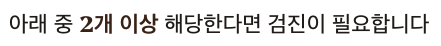 아래 중 2개 이상 해당한다면 검진이 필요합니다.