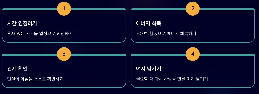 혼자 있고 싶은 마음을 억누르기보다, 그 시간을 의미 있게 사용하는 것이 중요합니다.