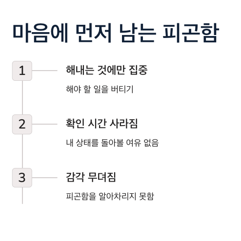 피곤함이 오래가면 가장 먼저 달라지는 건 수면시간이 아닙니다. 내가 나를 평가하는 기준이 달라집니다.