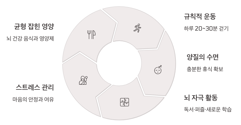 - 독서·퍼즐·학습 같은 뇌 자극 활동