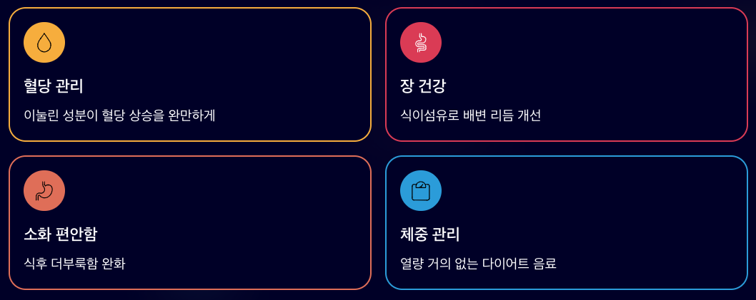 식이섬유가 포함된 차를 꾸준히 마시면 장이 규칙적으로 움직이는 데 도움이 될 수 있습니다. 변비로 고생하는 분들이 “속이 한결 편하다”고 느끼는 경우도 있어요.