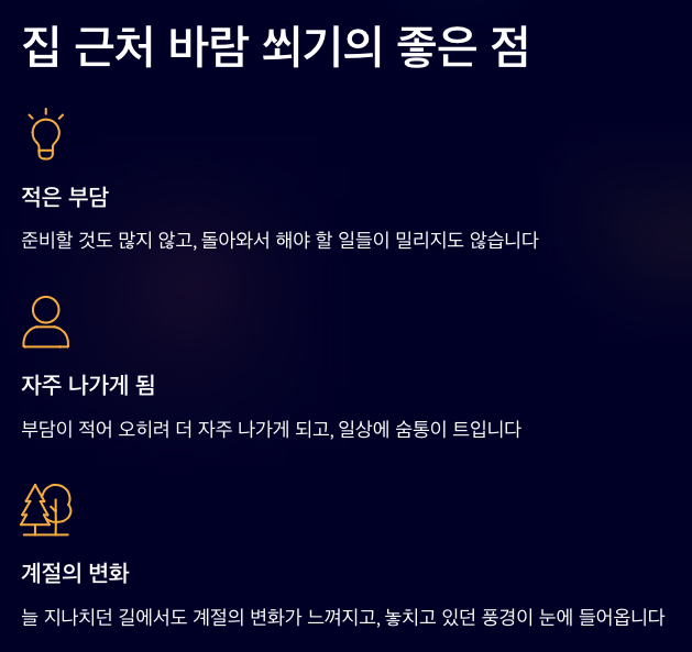 집 근처 바람 쐬기의 좋은 점