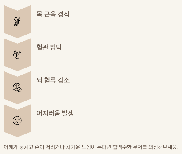 목 근육이 경직되면 주변 혈관까지 압박해 뇌로 가는 혈류량이 떨어질 수 있습니다.