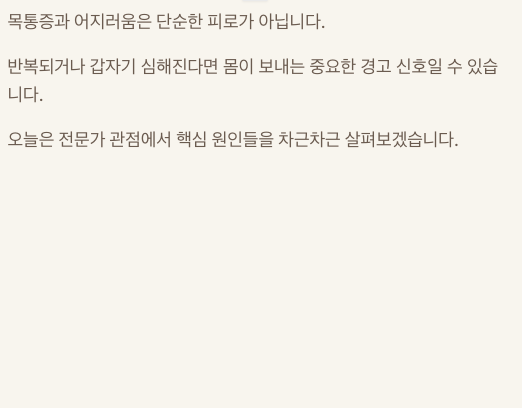 목통증과 어지러움이 함께 올 때는 절대 가볍게 넘기면 안 되는 이유가 있습니다.