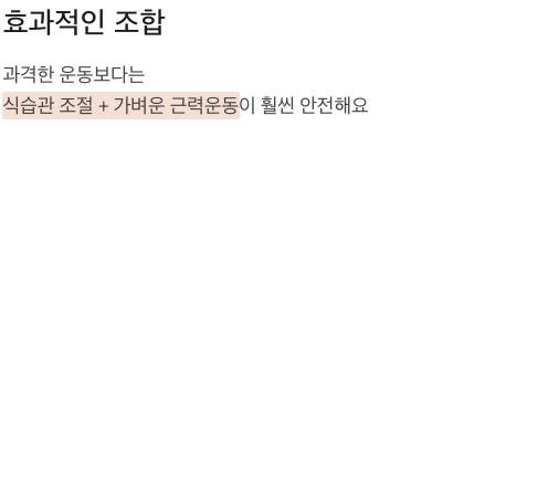 그래서 다이어트를 위한 과격한 운동보다, 식습관 조절 + 가벼운 근력운동 조합이 훨씬 효과적이에요.