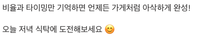 본 글은 가정에서 즐기는 레시피를 정리한 참고 자료입니다. 개인의 취향과 환경에 따라 조절하시기 바랍니다.