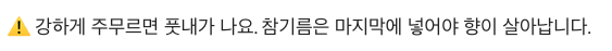 👉 참기름은 마지막에 넣어야 향이 살아납니다.