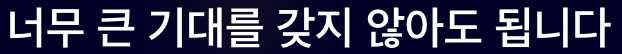 너무 큰 기대를 갖지 않아도 됩니다