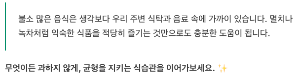 불소 많은 음식은 생각보다 우리 주변 식탁과 음료 속에 가까이 있습니다. 멸치나 녹차처럼 익숙한 식품을 적당히 즐기는 것만으로도 충분한 도움이 됩니다. 무엇이든 과하지 않게, 균형을 지키는 식습관을 이어가보세요. ✨