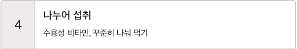 수용성 비타민이기 때문에 한 번에 많이 먹기보다 나누어 섭취하는 것이 도움이 됩니다.
