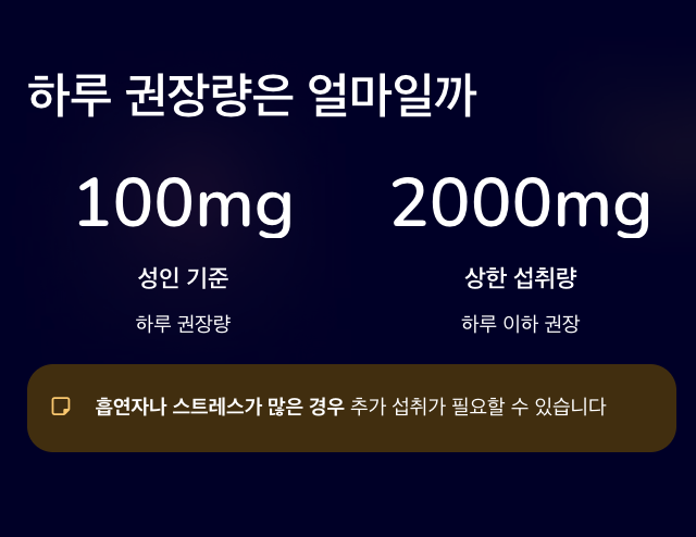 - 흡연자나 스트레스가 많은 경우: 추가 섭취 필요할 수 있음