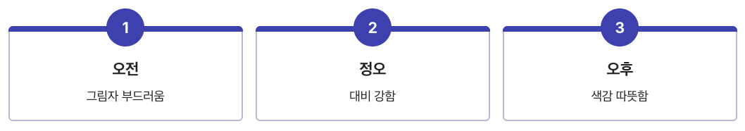 • 오전: 그림자 부드러움