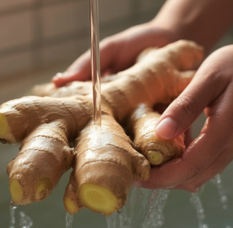 생강은 흙이 많이 묻어 있으니 물에 먼저 헹구고, 솔이나 손으로 비벼서 흙을 제거합니다.