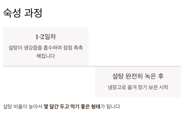 - 설탕 비율이 높아서 오래 두고 먹기 좋은 형태가 됩니다.