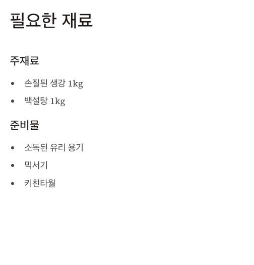 → 생강과 동량(백설탕 사용 시 색이 밝고 깔끔함) - 소독된 유리 용기