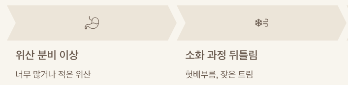 만약 평소보다 식욕이 급격히 줄고, 음식을 먹기 두려울 정도의 소화불량이 매일 지속된다면 만성 위염, 위궤양 또는 헬리코박터 감염 여부를 점검해야 합니다.