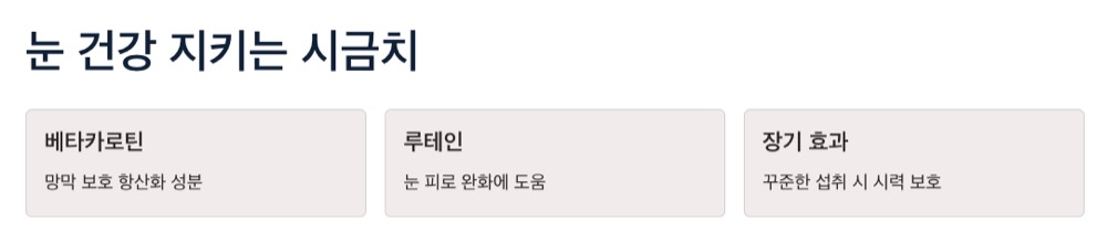 - 과학적 근거: 베타카로틴과 루테인은 망막 보호에 관여하는 항산화 성분으로 알려져 있습니다.