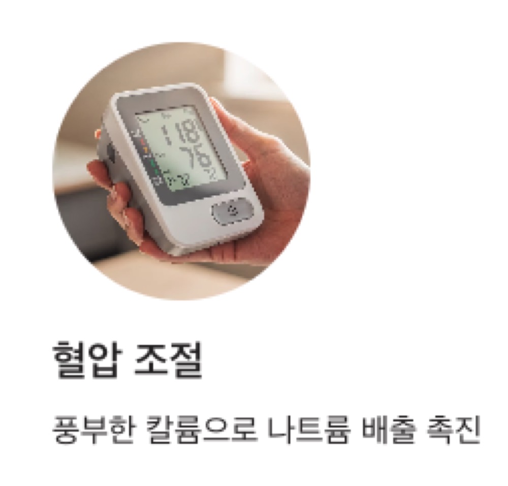 • 과학적 근거: 칼륨은 나트륨 배출을 도와 혈압 조절에 관여하는 미네랄로 알려져 있습니다.