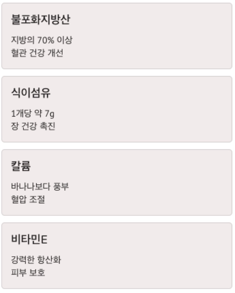 • 과학적 근거: 불포화지방과 식이섬유는 식후 포만감을 높이는 것으로 보고됩니다.