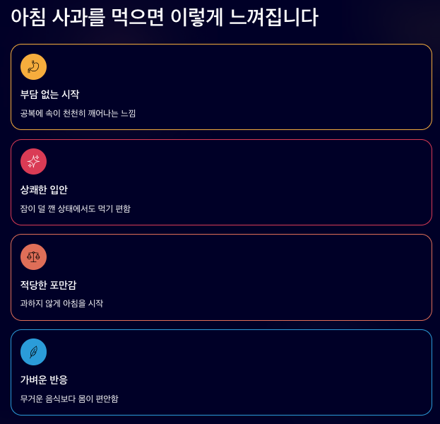 아침에 사과를 먹으면 이렇게 느껴지는 경우가 많습니다