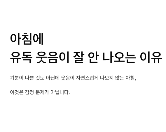 웃음은 단순한 표정이 아니라, 몸과 마음에 여유가 있을 때 자연스럽게 나오는 반응입니다. 아침에는 하루를 준비하느라 몸과 머리가 기본 상태를 맞추는 데 에너지를 먼저 사용합니다.