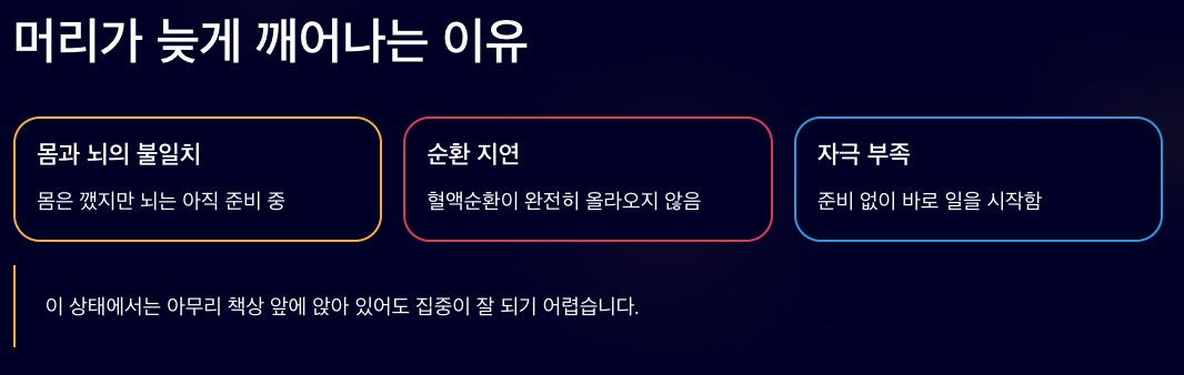 아침에 집중이 잘 안 되는 것은 능력의 문제가 아니라, 아직 머리가 완전히 깨어나지 않았다는 신호일 수 있습니다. 집중은 마지막에 도착하는 감각입니다.
