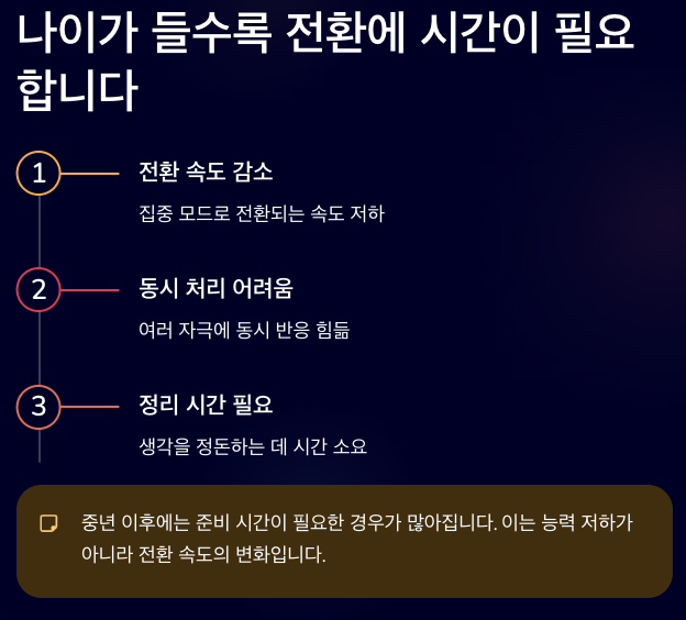 나이가 들수록 집중 전환에 시간이 필요합니다