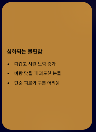 눈이 하루 종일 불편해지는 순간부터 신경이 쓰이기 시작합니다