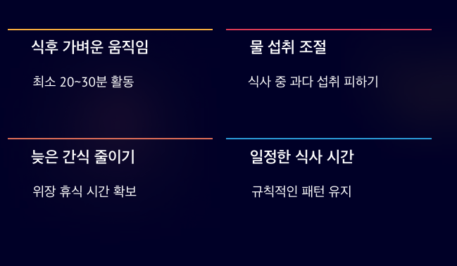 • 야식이나 늦은 저녁 식사가 잦은 패턴