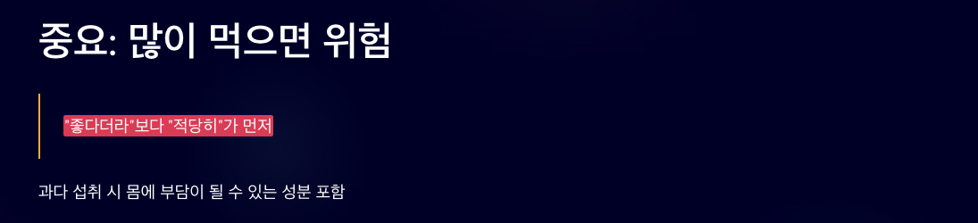 - 한 번에 많이 먹지 말고 간식처럼 소량만