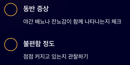 - 불편함의 정도가 점점 커지고 있는지 관찰합니다