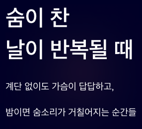 천식 원인은 언제부터 의식하게 될까천식 원인은 갑자기 숨이 막히는 듯한 느낌을 겪고 나서야 떠올리게 되는 경우가 많습니다. 평소엔 문제없다가 계단을 오르거나 밤에 누웠을 때 가슴이 답