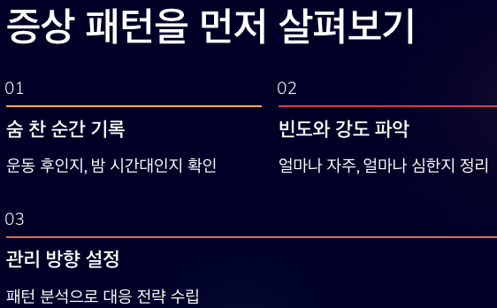 천식 치료법은 현재 나타나는 증상을 관찰하는 단계에서 시작됩니다. 숨이 찬 순간이 언제 발생하는지, 운동 후인지 밤 시간대인지 정리해보는 것만으로도 이후 관리 방향을 잡는 데 참고가 될 수 있습니다.