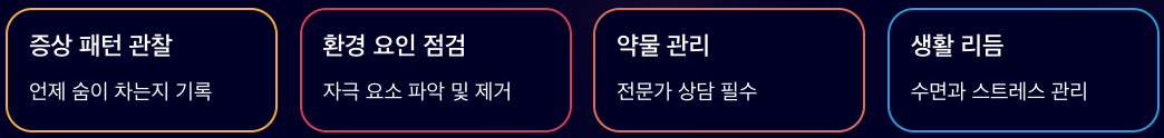 정리하자면, 천식 치료법은 증상이 나타날 때마다 단편적으로 대응하기보다 생활과 환경을 함께 살피는 관리 흐름으로 접근하는 것이 중요합니다. 지금도 숨이 찬 순간이 반복되고 있다면, 내 몸의 신호를 차분히 점검해보는 것이 필요해 보입니다.