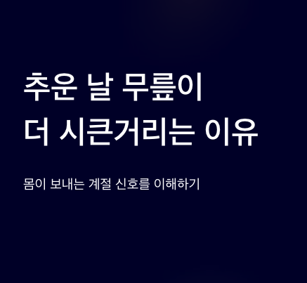 추운 날 무릎이 더 시큰거린다고 느껴질 때, 그걸 문제로만 보지 말고 계절이 바뀌었다는 신호로 받아들여 보세요. 그 인식 하나가 몸을 대하는 마음을 훨씬 편안하게 만들어 줍니다.