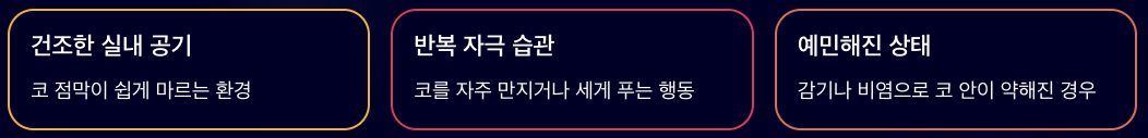 - 실내 공기가 건조해 코 점막이 쉽게 마르는 상황