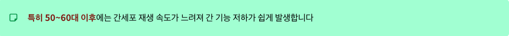특히 50~60대 이후에는 간세포 재생 속도가 젊을 때보다 느려지기 때문에, 생활 속 작은 무리가 누적되며 간 기능 저하로 이어지기 쉽습니다.