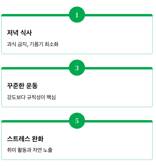 - 저녁 식사는 과식 금지, 기름기 최소화