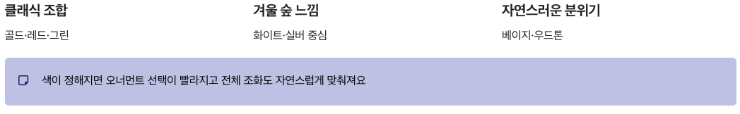 트리 장식의 기본: 색감을 먼저 정하면 쉬워져요