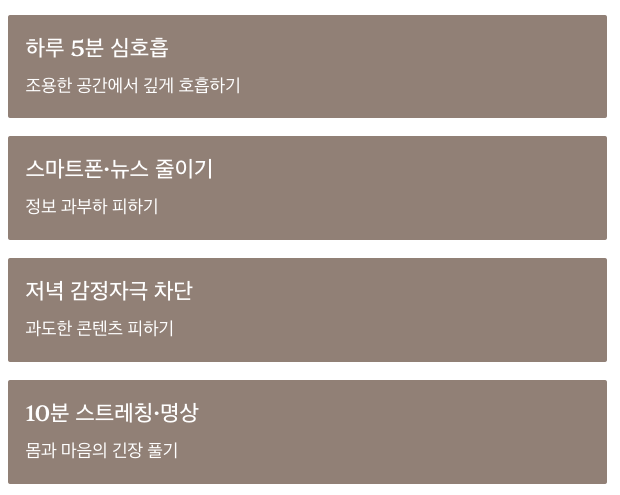 - 저녁 시간에는 과도한 감정자극 콘텐츠 피하기