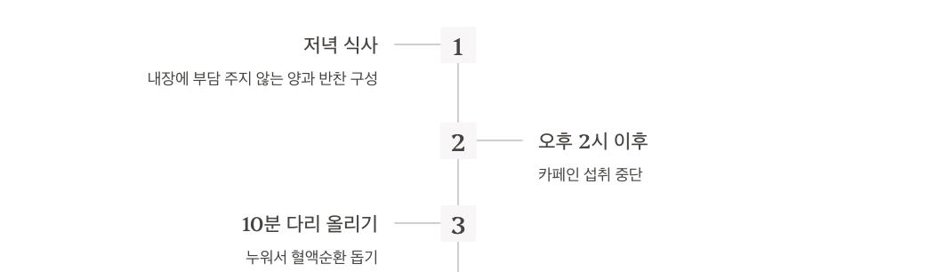 - 저녁 식사는 가볍게, 그리고 늦지 않게(6~7시 추천)