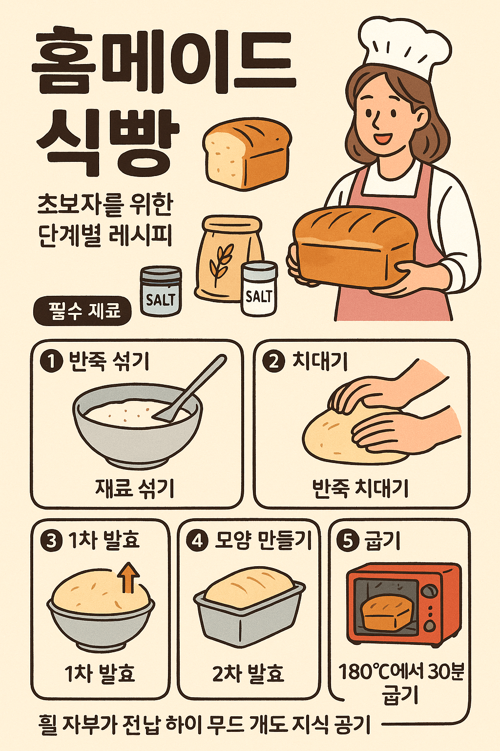 처음에는 집에서 식빵을 만드는 일이 다소 부담스럽게 느껴질 수 있습니다. 하지만 이것은 주방에서 가장 만족스럽고 편안한 경험 중 하나입니다. 집안 가득 퍼지는 갓 구운 식빵의 향기는 그 무엇과도 비교할 수 없으며, 올바른 방법만 따른다면 완전한 초보자도 부드럽고 폭신하며 맛있는 식빵을 만들 수 있습니다. 이 글에서는 홈메이드 식빵을 성공적으로 만들기 위한 기본 단계, 방법, 그리고 팁을 소개하여 누구나 쉽고 즐겁게 도전할 수 있도록 도와드립니다.