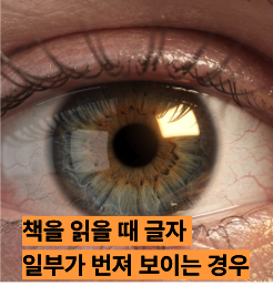 중심이 흐릿함 책을 읽을 때 글자 일부가 번져 보임 돋보기로 해결되지 않으면 검사 필요